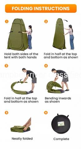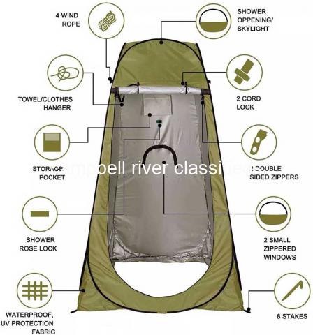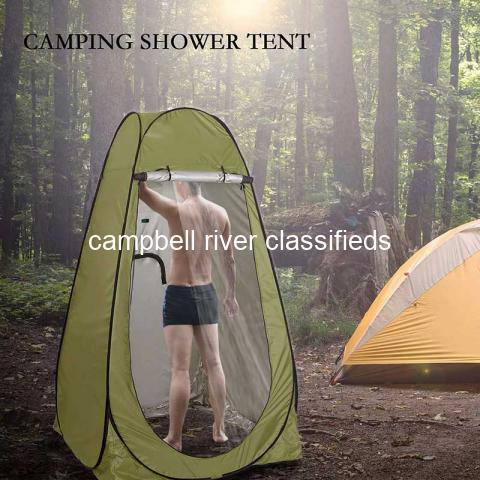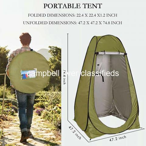 9 New green colored pop up shower tents for camping or what have you. Provides privacy outdoors in a convenient shelter that pops open when set up. Easy to install and pack away for next use.
